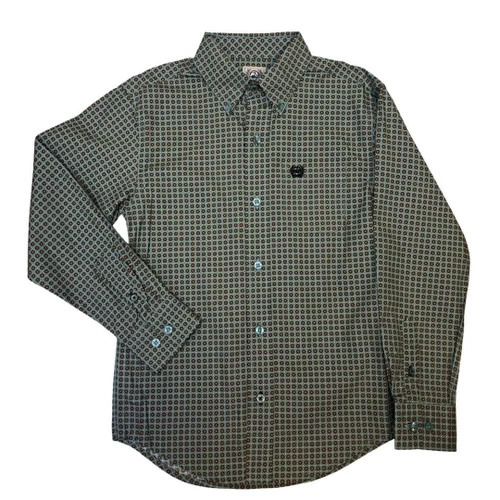 Boys Cinch Blue Foulard Button-Down Shirt is perfect for Western riding, competition, and ranch life. The classic button-down shirt for kids lets riders stay comfortable while looking professional. Handsome menswear foulard print shirt has a button-down collar, straight back yoke with box pleat, and a single chest pocket with dark blue embroidery Cinch logo.