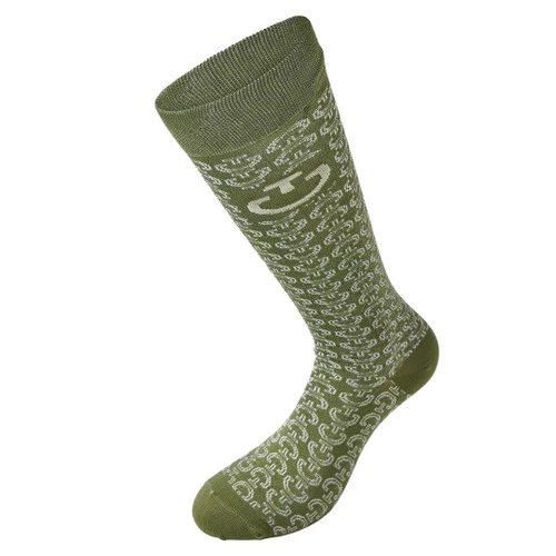 CT Motif Jacquard riding socks from Cavalleria Toscana come in beautiful Green 7815 color with logo print and solid color band, heel, and toe.