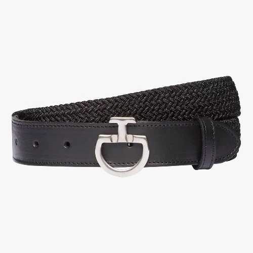Cavalleria Toscana Men’s Elastic Belt with CT Clasp is extra comfortable and stretchy with woven elastic rayon. The smooth leather tip and elegant CT metal logo clasp adds a classic finish. Men’s English riding belt in Black or Navy is ideal for showing or schooling.