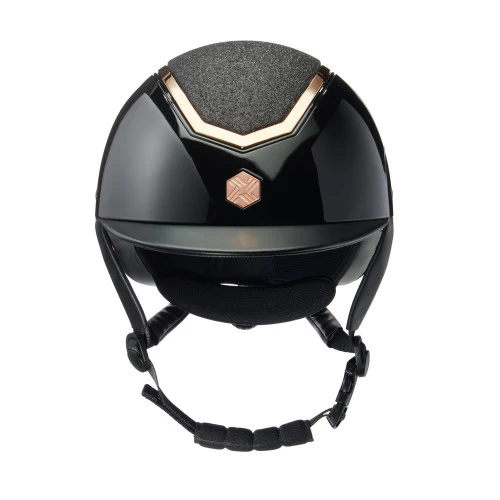 Charles Owen Kylo EQx Sparkly Helmet in Black or Navy delivers sophisticated glam plus outstanding comfort and the ease of a precision dial-fit system. The helmet has a glossy finish, sparkling center panel, and metallic contrast ring. Available in shell sizes Small, Medium, and Large, the Kylo Sparkly Helmet adjusts with the dial to fit a 4cm size range. The universal shell works for both round and oval shaped heads.