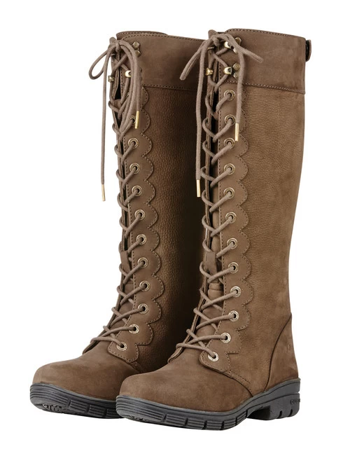 Dublin Admiral Boots have classic country boot style with full length front laces and scalloped overlay detail. Even better there’ a full length zipper in back so you can easily put them on and take them off. These eye-catching leather tall boots for riding and casual wear are waterproof, durable, and built for all-day comfort.