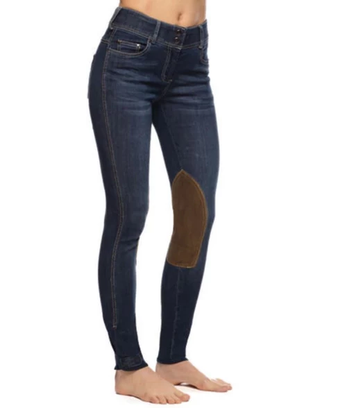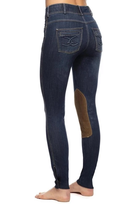 Goode Rider Equestrian Knee Patch Jean is a new, updated take on a favorite riding breech from Goode Rider. This women’s riding jean with classic knee patches is made with a modern fabric blend that creates four-way stretch and a super comfortable feel. Even the suede-look knee patches stretch to give you greater mobility plus grip in the saddle.