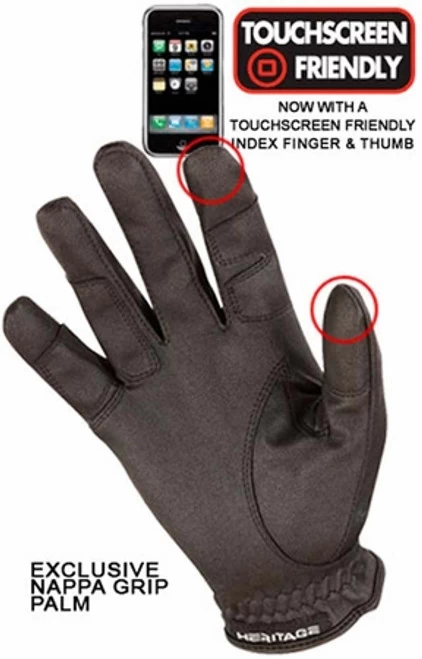 Designed for the serious competitor, the GPX Show Glove by Heritage seamlessly combines durability, style and function in one fantastic glove. For superior grip with the ultimate feel, the GPX Glove offers a perfect fit with Heritage’s synthetic leather material and comfortable Rein Cut design and stretch panel on knuckles. Offered in Black and White for the horse show ring and a stylish brown for a schooling option. Velcro wrist. Double stitched critical seams.