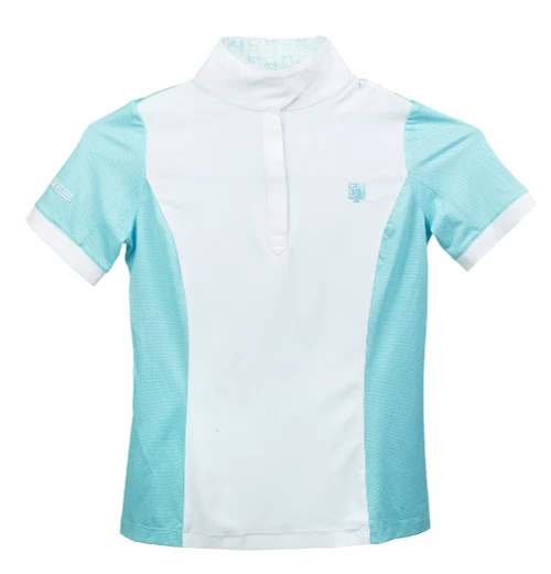 The Romfh Child’s Bit Signature Short Sleeve Show Shirt with easy magnetic collar is ready for the hottest show days! The Signature Show Shirt for kids is Romfh’s coolest, thanks to the short sleeves and Cool-touch microfiber fabric with Chill Factor. Chill Factor makes skin feel cooler when the rider starts to heat up and perspire. Ventilating sheer mesh panels located discreetly underneath sleeves add welcome airflow. The white woven placket and magnet wrap collar give the shirt a traditional show ring look.