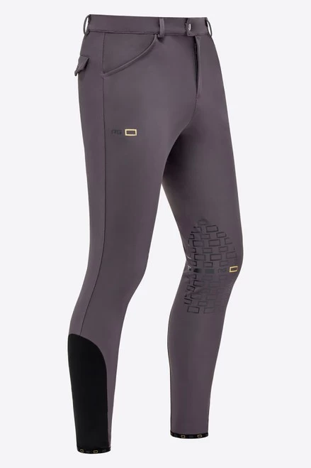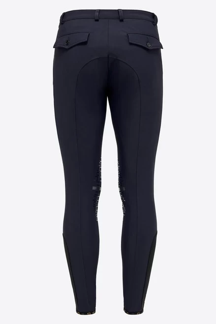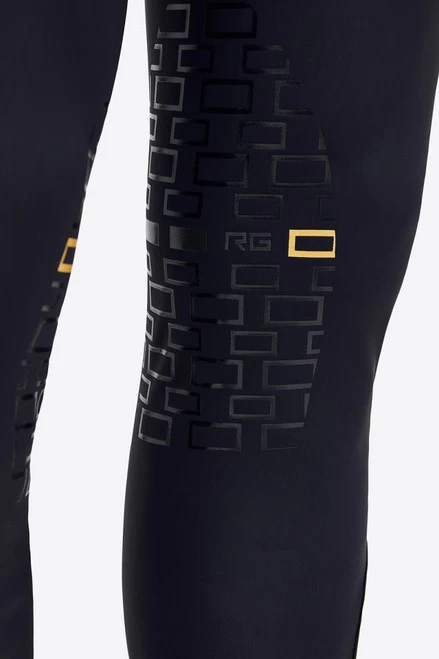 RG Men’s Knee Grip Riding Breeches from Rider’s Gene at Cavalleria Toscana have a comfortable and flattering fit plus classic style with a contemporary twist. The technical stretch fabric is wicking, fast drying, and supportive. Men’s riding breeches from RG Rider’s Gene in Navy and Grey feature RG logo print at the knees for flexible grip in the saddle.