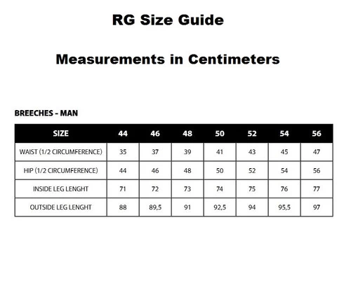 RG Men’s Riding Breeches have a grip lining inside the waistband to keep your shirt tucked in place. Hunter jumper casual breeches have a euroseat with faux flap pocket detail, front pockets,and stretch lower leg panel for comfort under boots. Contrasting printed RG graphics give the RG Men’s Breeches a sporty finishing touch.